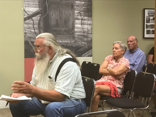 Bill Bankhead, a long-time vendor at the Chestertown farmers market, speaks at the town council meeting Sept. 4