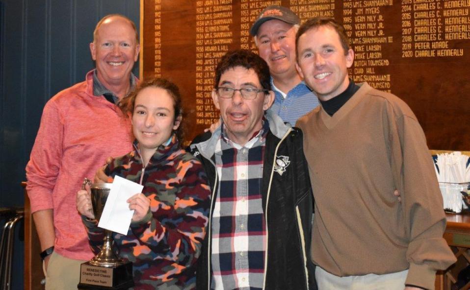 The Benedictine Charity Golf Classic winning team “Team Special Olympics” poses with Benedictine’s Executive Director Scott Evans at the annual event held at the Talbot Country Club. (Pictured left to right: Scott Evans, Executive Director, Kendall McCauley, Will Montague, Frank McCauley, Billy Ulevich.)