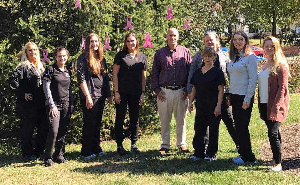 Team members in University of Maryland Shore Regional Health’s Respiratory Services Department celebrated National Respiratory Care Week, October 23 through 29. UM SRH respiratory therapists provide critical care and cardio-pulmonary medicine for patients with acute critical conditions, including cardiac and pulmonary diseases, and see patients at UM Shore Medical Center at Easton, in the Intensive Care Unit, as well as in emergency departments and other units throughout UM Shore Medical Centers at Cambridge, Chestertown, Easton and Queenstown. Pictured, left to right, are respiratory therapists Karen Anderson, Priscilla Weatherall, Emily George and Kendall Dixon; Steve Eisemann, Director, Respiratory Services, UM SRH; respiratory therapists Kelly Runnels, Philomena Leon and Patty Joiner; and Lyndsey Feather, Manager, Respiratory Services, UM SRH.
