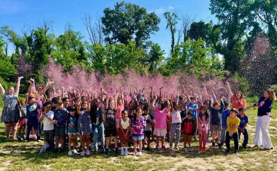 Easton Elementary School students throwing confetti during For All Seasons “Spread Joy Confetti Challenge”