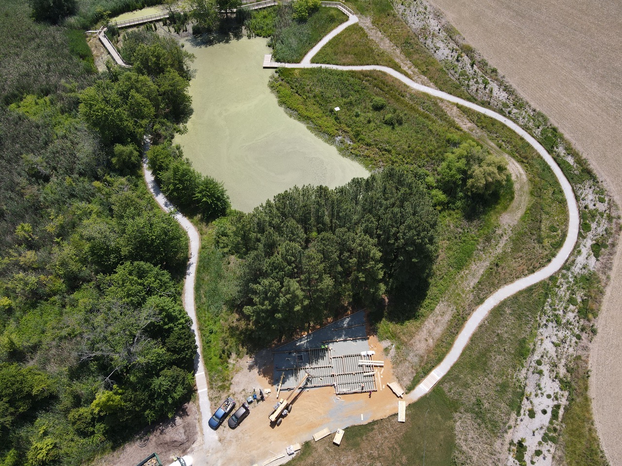 View of the Harwood Nature Center, a recently completed 1,200 square foot building that will serve as the hub of the Lawrence Wetlands Preserve