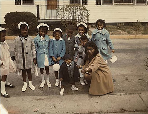 For this Easter weekend, we share a Flashback Photo from the Chesapeake Heartland Digital Archive. The image, taken on Prospect Street in Chestertown, shows nine children decked out in their holiday outfits on Easter in 1967. From left to right, the children are Kim Briscoe Moody, Lisa Lomax, Yancie Brooks, Karen Graves, Charles Freeman, Donita Ringgold, Tammy Lomax, and Monica Graves Bently. Ethel Hamilton kneels down, holding out a bottle next to the baby Marcus Freeman.