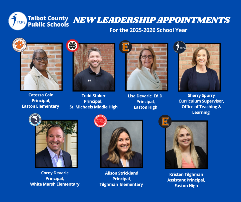 “This is an exciting time for our District,” said Dr. Sharon Pepukayi, Ed.D. “These outstanding leaders will take the helm as we implement our new Strategic Plan for FY26 – FY2030. In the coming school year, we will Transform and Perform in Every Way to provide the best possible education for the children of Talbot County.”