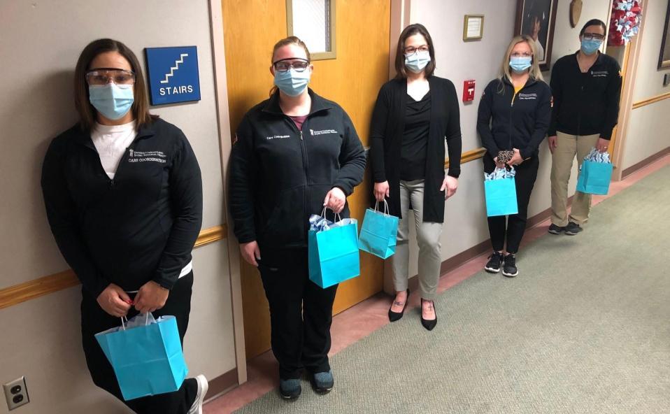 Photo: Shown celebrating National Social Work Month are UM Shore Regional Health social work care coordinators Stacey Kuhn, Sarah Demers, Melissa Kleppinger, Brittni Conn and Angela Meekins.