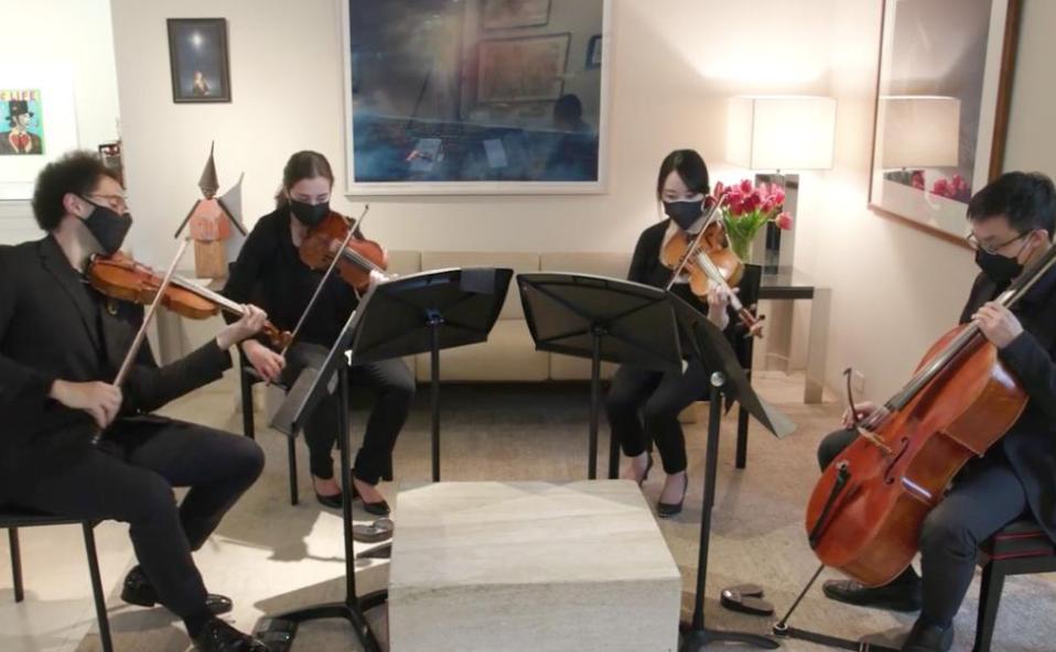 The Zelter String Quartet, comprised of violinists Kyle Gilner and Gallia Kastner, violist Nao Kubota, and cellist Allan Hon, formed in Los Angeles in 2018. The quartet presented three string quartet works in chronological order. The Dior Quartet formed their ensemble at Indiana University in 2018, but hail from Israel, Canada, St. Lucia, and the U.S. Members Noa Said, violin; Tobias Sales, violin; Caleb Georges, viola; and Joanne Yesol Choi, cello showcased the evolution of the string quartet and how its repertoire portrays a variety of human stories across centuries.