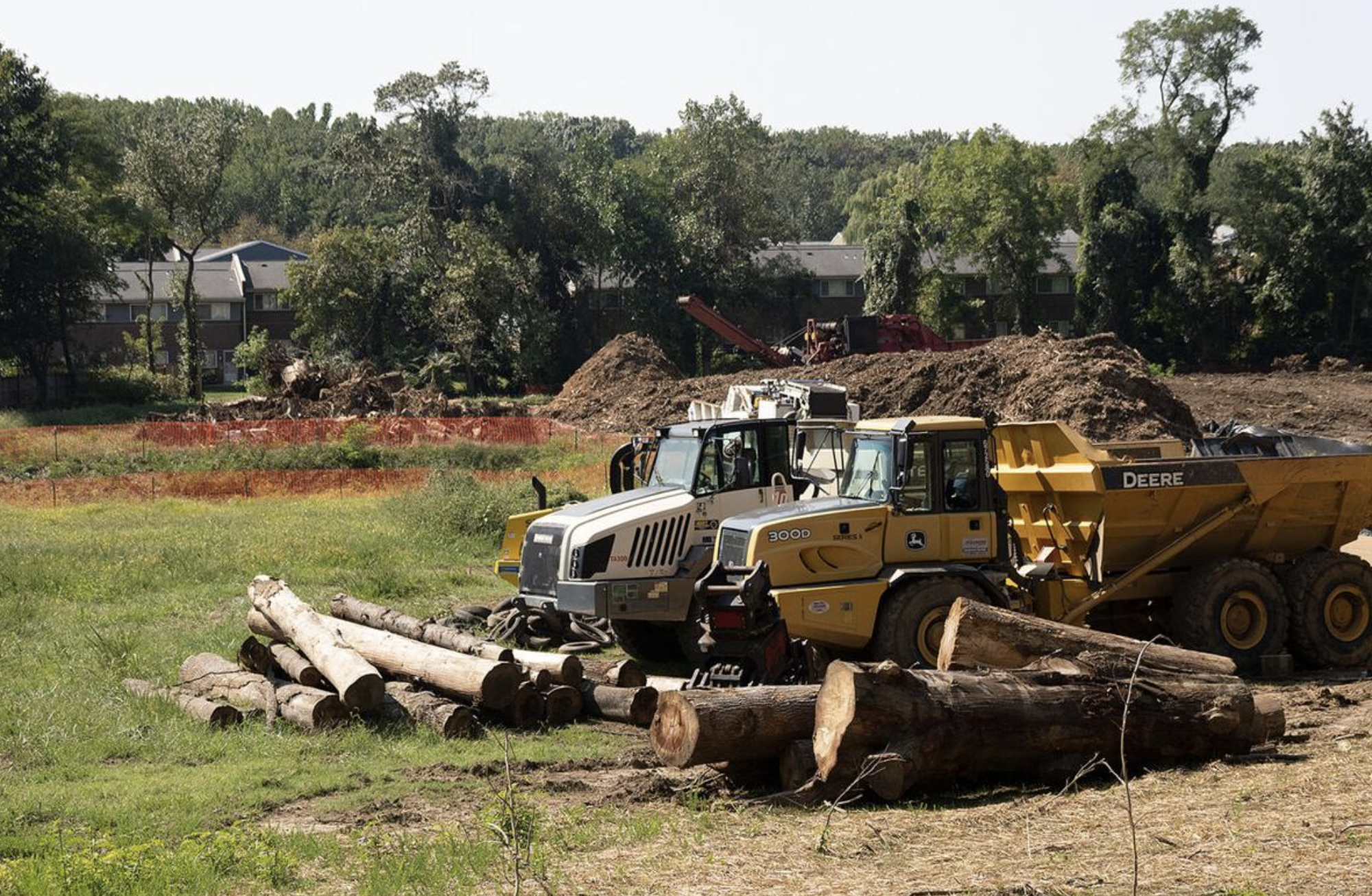 Amputated tree trunks and mounds of shredded wood are all that’s left of a patch of woods off Aris T. Allen Boulevard in Annapolis that was cleared for development.  Dave Harp