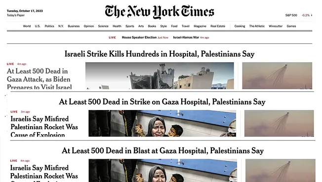 People tend to believe news that supports their worldview, especially when enabled by a prestigious media outlet like the New York Times. The first Times news alert headline about the hospital bombing hit Tuesday evening, October 17: Breaking News: Israel Strike on Hospital Kills Hundreds, Palestinian Official Says. The Israeli Defense Force (IDF), already reeling from last week’s terrorist attack that left 2,000 dead and over 200 people taken hostage, now had to quickly engage in a media battle to refute misinformation blaming Israel for the hospital bombing. The IDF denied responsibility and circulated evidence showing it was misfired terrorist missiles fired within Gaza that struck the hospital. The US later corroborated the Israeli interpretation of events. The Times eventually changed their homepage headline to read, At Least 500 Dead in Blast Gaza Hospital, Palestinians Say, (deleting the reference to “Israeli Strike,”) but the misinformation damage was done.